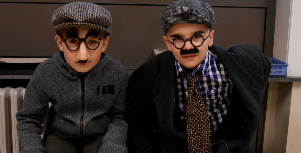 Hier zie je onze vijfdeklassers in hun carnavalskostuum. Zien ze er niet beeldig uit?