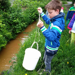 Daarvoor zijn we eerst naar de beek gegaan om vuil slootwater te halen. In het park zijn we ook nog zand gaan halen, want zand is een goede filter die grote stukjes vuil tegenhoudt.