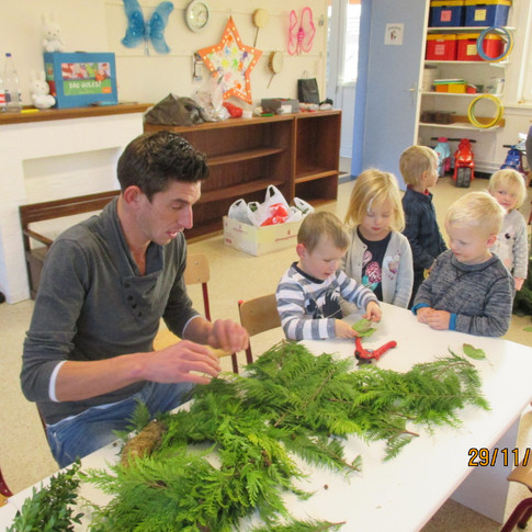 Op 't Goortje was 't weer heel gezellig. Samen met twee moekes en een papa maakten onze kleuters een adventskrans voor in hun klas en voor op de speelplaats. Laat het nu maar donker worden en onze lichtjes branden...