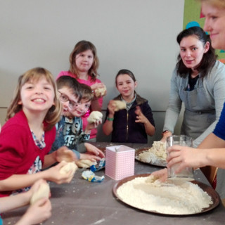 Met de hulp van enkele helpende handen van enkele mama’s, kneedden we deeg en lieten het rijzen.