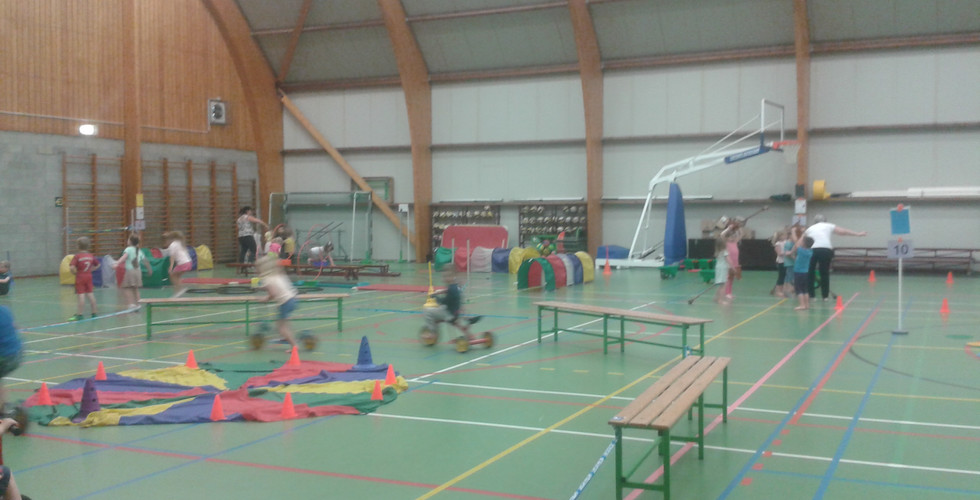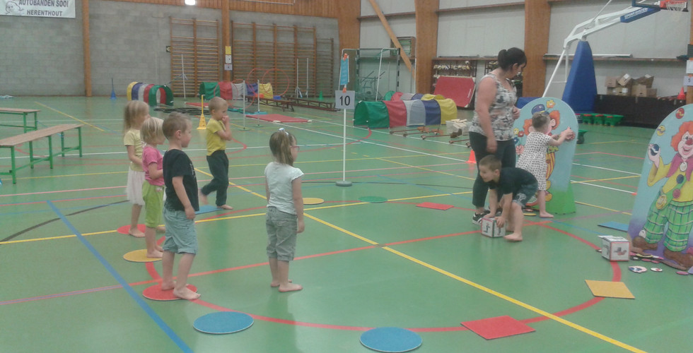 Maandagnamiddag zijn we gaan sporten in de sporthal te Wiekevorst. We werden verwelkomd door een clown. In de zaal waren er verschillende standen aanwezig, waarbij we kunsten van de clowns konden uitproberen. Bedankt aan de mama's en oma om ons te begeleiden in kleine groepjes.