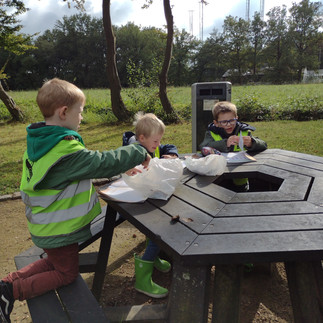 De herfst is weer in het land! Dus trekken we de natuur in om te leren over bomen, paddenstoelen, bladeren, vruchten,... We meten de omtrek van een boom, wel 4 meter!