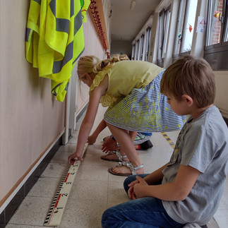 We hebben hard gewerkt vandaag en gingen aan de slag met de meter! Hoe hoog is de deur? Hoe lang is de lessenaar van de juf? Hoe breed is de klas? Of is de juf groter of kleiner dan 2 meter? Wij weten het allemaal!