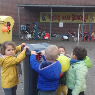 We trekken een heel speciale kar vandaag! We trekken nl de kar van de vuilnisophalers en containerparkwachters. Daarom versieren we de vuilbak en trekken hem naar de straatkant. Een grote dankjewel van onze kleine kapoenen!