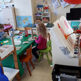 Donderdag was natuurlijk een topdag, want die nacht waren de Sint en zijn pieten bij ons op school langs geweest. Onze klas lag helemaal overhoop, met in de kring voor iedereen een zak vol met lekkers en speelgoed voor in de klas. De Pieten hadden zelfs op onze schilderwerken geschilderd en van de Sint lag er een brief. Jammer genoeg kon de Sint dit jaar niet langskomen op onze school, maar we konden hem wel zien dankzij een filmpje dat hij speciaal voor ons had gemaakt.