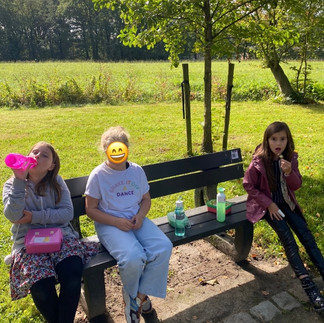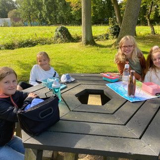 Joepie, afgelopen dinsdag was het een zonnige herfstdag! Daar hebben wij extra hard van genoten. Zo zijn we met z'n allen naar het park gewandeld om daar gezellig te picknicken. Terwijl we onze lekkere boterhammen aten, zagen we de eendjes en de schildpadden in de vijver. Leuk hé! Na het picknicken deden we ons afval netjes in de vuilnisbak en speelden we nog even buiten op de speelplaats.